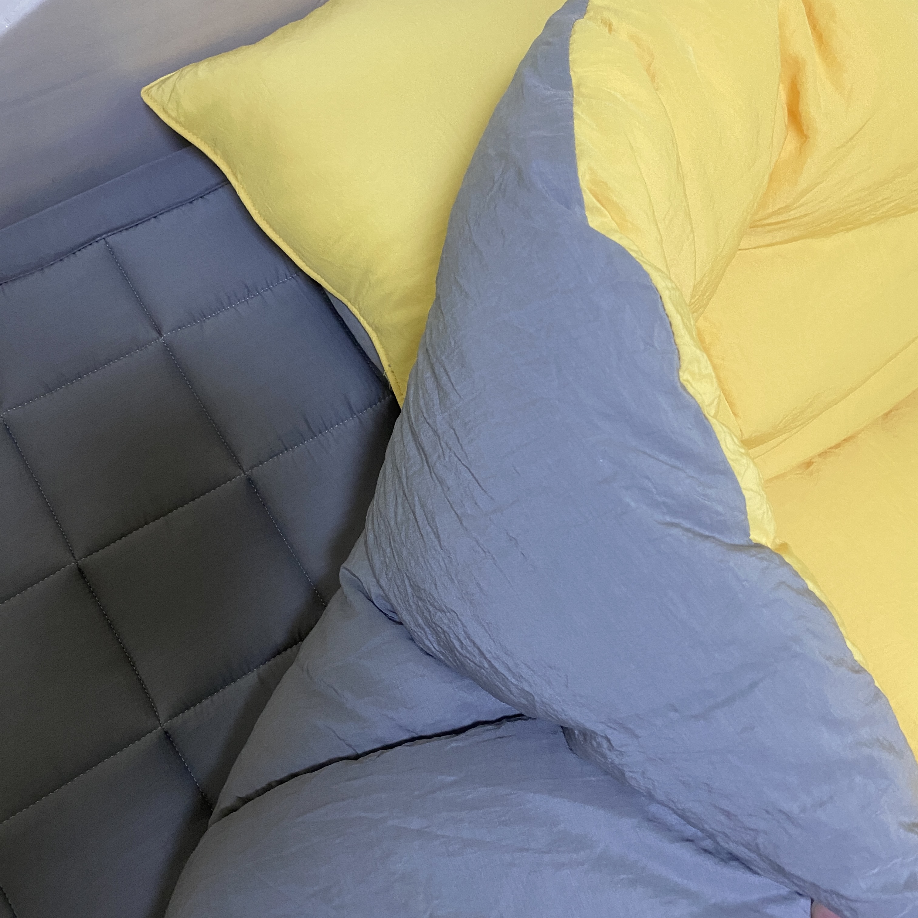 나도 감성감성한 이불세트 갖고싶은데...내 방이랑 어울리지도 않을뿐더러 매장에 그런 건 없어서 걍 귀여운 이불 사버림^^ 한살이라도 젊을 때 귀여운 이불이나 덮고 자야지 룰룽 나름 노랑-회색이라 반전매력도 있따